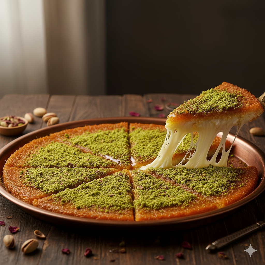 Probieren Sie unsere zarte Kunafa, die mit Liebe und besten Zutaten zubereitet wird.